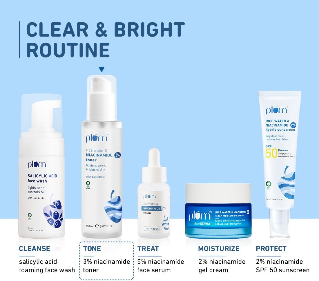 تونر النياسيناميد وماء الأرز لبشرة مشرقة